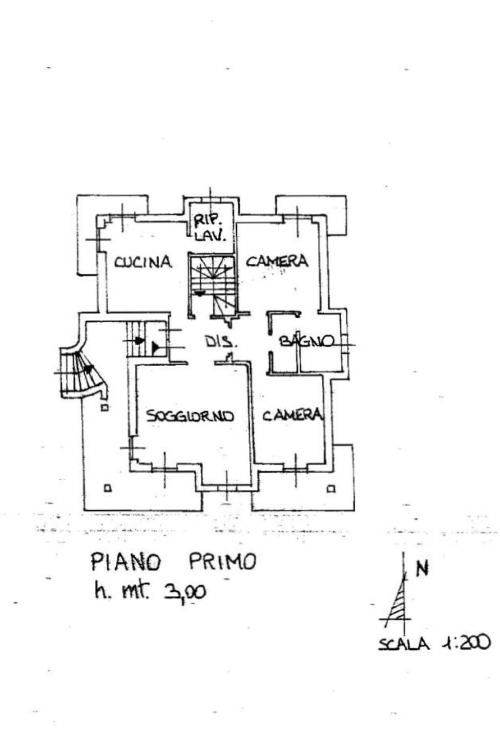 Accessibile sia da scala interna sia da elegante scala esterna in pietra troviamo l'appartamento sito al primo piano. L'ingresso è in zona giorno composta a destra da luminoso salone con camino e accesso al terrazzo, mentre a sinistra ampia cucina abitabile munita di dispensa e lavanderia con accesso al secondo terrazzo. La zona notte, accessibile da un'originale porta a vetri e composta da due camere da letto matrimoniali, di cui una con cabina armadio, doppi servizi.